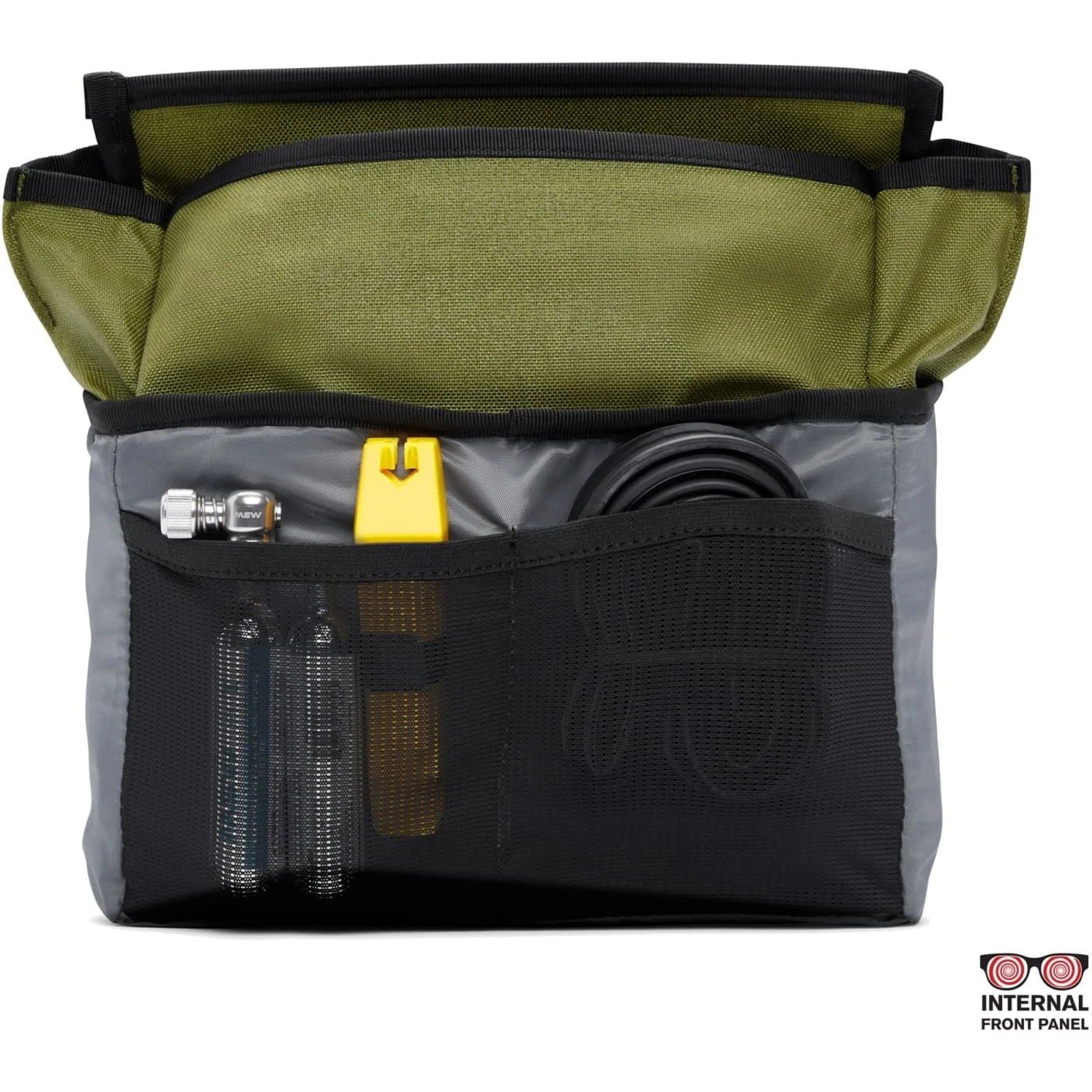 A compact handlebar bag built for your bike or your back. Designed with versatility in mind, The Doubletrack Handlebar Sling can be quickly removed from your bars and worn cross body with a stowable strap. The magnetic closure is easy to open and close with one hand which means you won’t need to stop in order to snack. Featuring heritage materials like DWR coated nylon and tarp, the Doubletrack Sling bag is both durable and easy to clean.