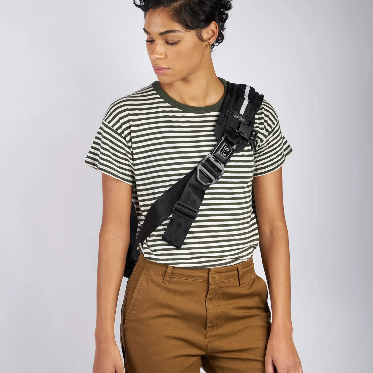 The Kadet is a compact messenger-style sling bag constructed with military grade materials. It’s built to carry your essentials in a small, comfortable, lightweight pack with a quick release aluminum seatbelt buckle.
