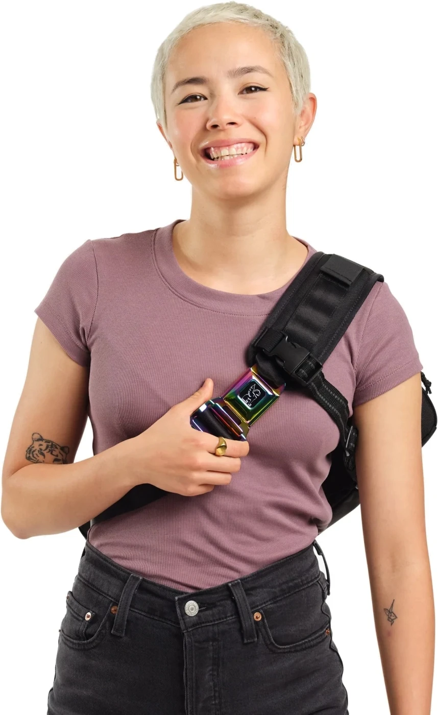 - Cross-body wear with easy swing around access
