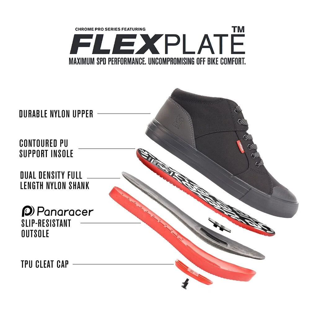 The original Chrome mid-rise, high top sneaker. Now part of the Pro Series, the Southside 3.0 Pro is engineered with the Flexplate technology, combining clipless pedal performance and walking comfort for a bike shoe you can wear anywhere.